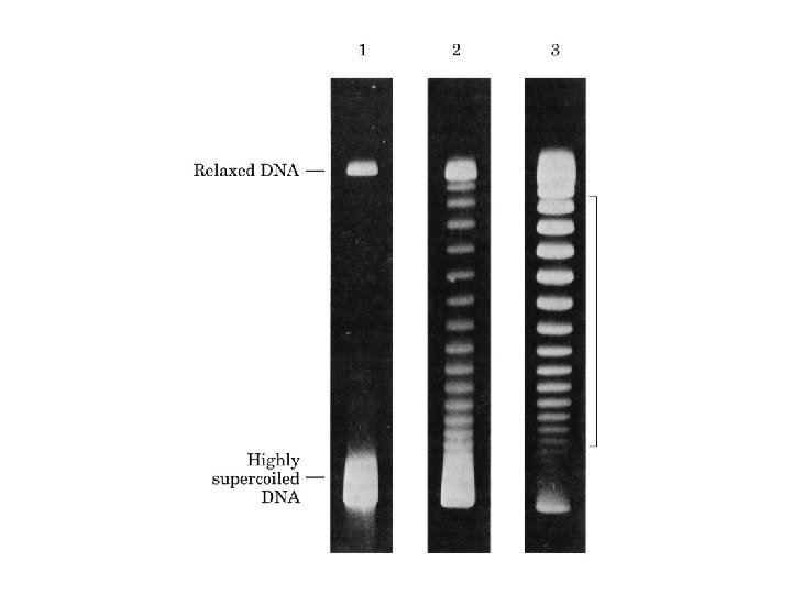 Supercoiling of DNA 4. Methods for measuring supercoiling based on how compact the DNA is A. Gel electrophoresis i. 1 dimensional ii. 2 dimensional B. Density sedimentation