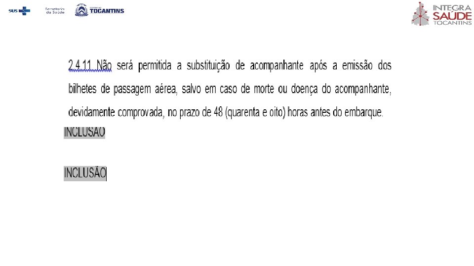2. 5. 5 Caso ocorra a reemissão de passagem por motivo de perda de vôo o paciente ou seu acompanhante responsável arcarão com a legal/ taxa cobrada para reemissão e diferença do valor da tarifa da passagem (se houver) diretamente com a companhia aérea, ou no caso de passagem terrestre diretamente com a empresa rodoviária correspondente.
