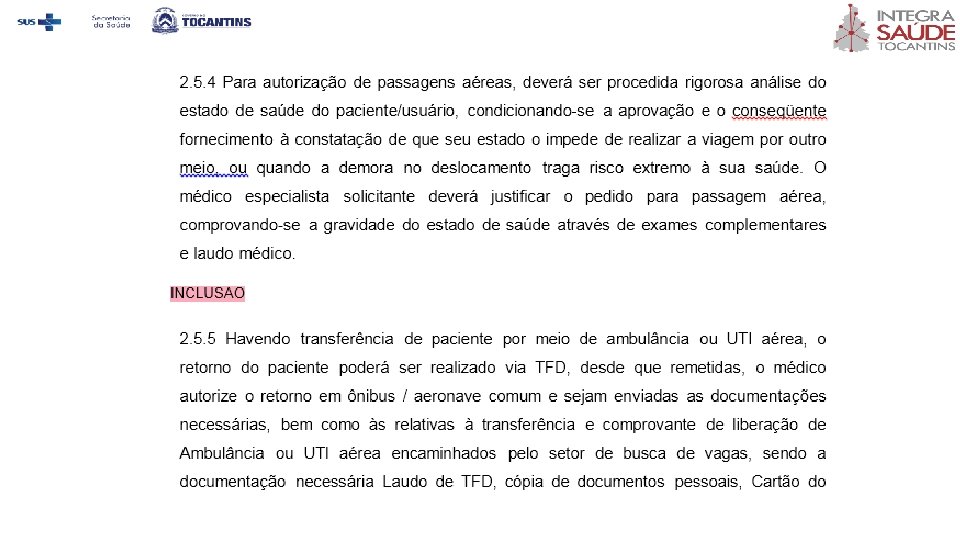 2. 4. 5 Será autorizado um segundo acompanhante em situações especiais a ser deferida pelo médico regulador, cujo deslocamento do paciente requer um segundo acompanhante, comprovada esta necessidade por laudo médico.
