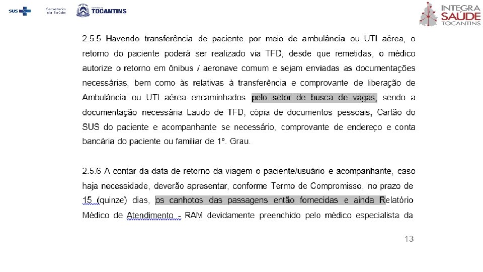 OBS: As justificativas deverão ser detalhadas para que o médico regulador possa avaliar e decidir o tipo de transporte. IMPORTANTE: Apesar de competir ao médico da Unidade, analisar e justificar a necessidade do acompanhamento, de acordo com o caso e as condições do paciente, a Comissão Médica Reguladora pode indeferir tal necessidade depois de analisada a justificativa apresentada, pois a autorização de acompanhamento que não seja imprescindível, poderá prejudicar o orçamento necessário à autorização de outros pacientes devido à limitação dos recursos orçamentários destinados ao TFD.