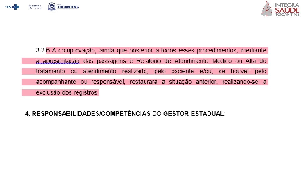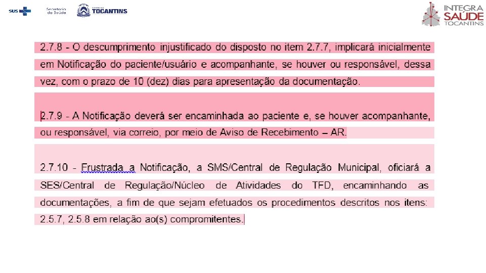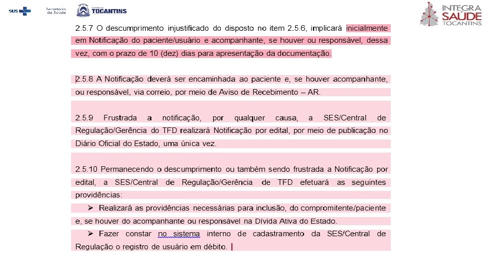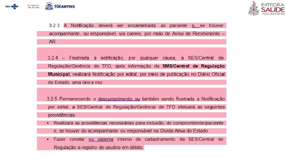 3. 2. 5 Permanecendo o descumprimento fazer constar em sistema interno de cadastramento da SES/Central de Regulação o registro de usuário em débito.