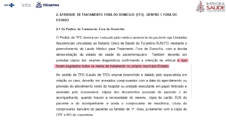 e de que foram esgotados as possibilidades de resolutividade no âmbito da atenção básica ou de média e alta complexidade no município/Estado.