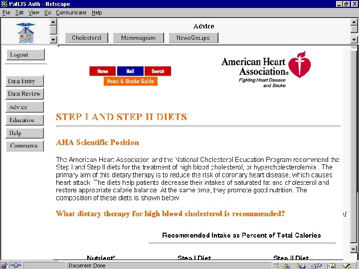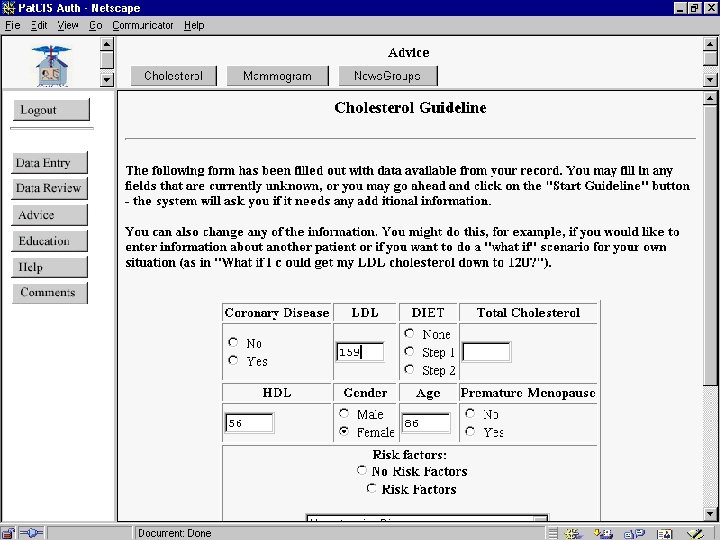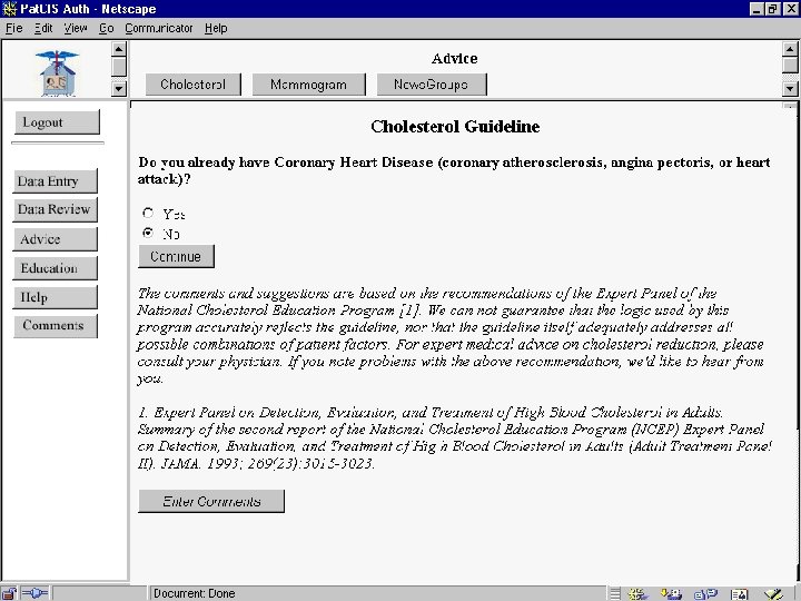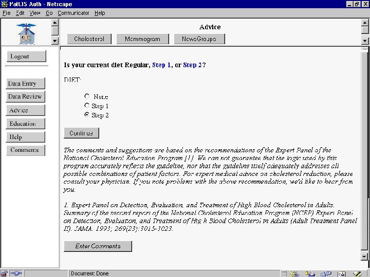 EMR and Decision Support • The Medline Button - understand conditions • Pharmacy Infobutton - review and teach • Cholesterol Guideline - dietary planning