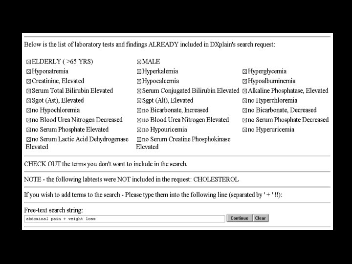 EMR and Decision Support • • The Medline Button - understand conditions Pharmacy Infobutton - review and teach Cholesterol Guideline - dietary planning Dxplain Button - understand findings Qing. CIS - problem-oriented views Pat. CIS - patient education Lab Infobutton - patient information