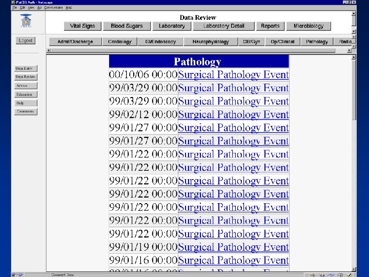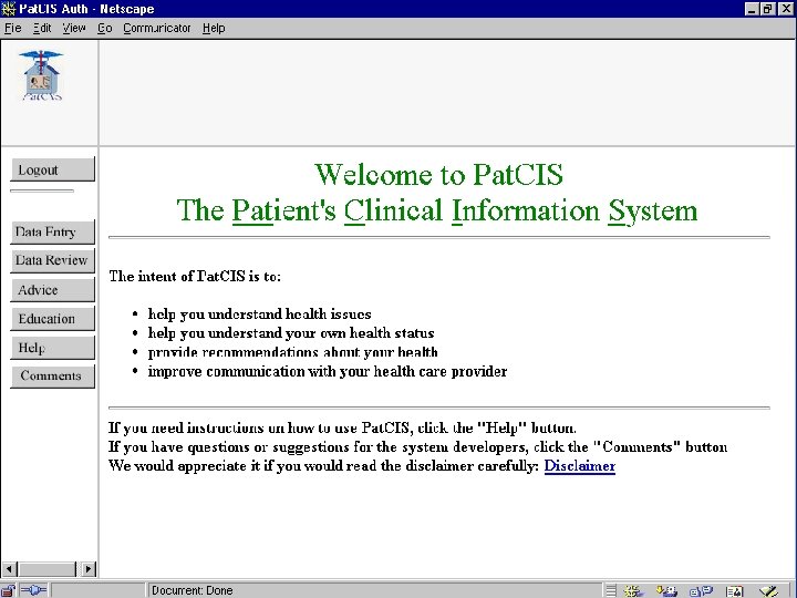 New York Presbyterian Hospital Information Architecture • • Central repository Data Access Modules Medical Entities Dictionary Med. LEE CIS Web. CIS Pat. CIS