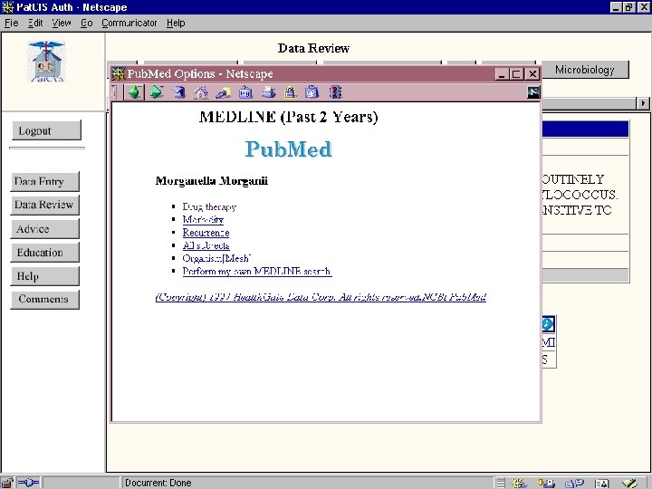 EMR and Decision Support • • • The Medline Button - understand conditions Pharmacy Infobutton - review and teach Cholesterol Guideline - dietary planning Dxplain Button - understand findings Qing. CIS - problem-oriented views Pat. CIS - patient education Lab Infobutton - patient information Microbiology Infobuttons - infection control Mammography Guideline - screening