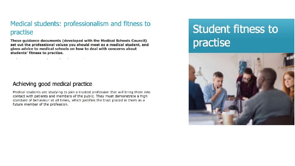 Examples of Fitness to Practise Issues • Poor attendance and engagement • Persistent poor professionalism • Probity e. g. signing for someone when not there, forging an entry in an assessment • Unprofessional behaviour outside school/clinical placements • Harassment • Academic misconduct. e. g Plagiarism