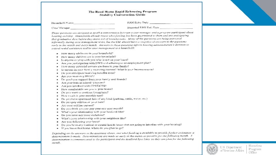 Keys To Success • Targeting • Baseline Assessment & Initial Housing Plan • Individualized, Flexible Assistance • Housing and Service Partnerships • Case Closure • Program Policies, Procedures, and Quality Improvement