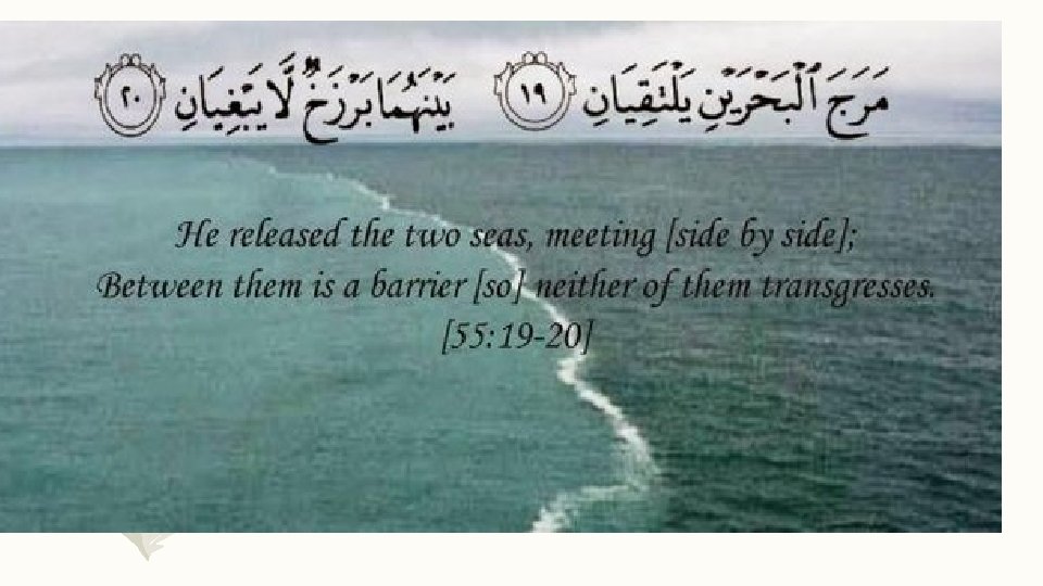 Verse 19 – Two seas that meet together – Sweet and Salty waters – There is a barrier they do not transgress – Due to the difference in salt and density – Mediterranean and Atlantic is one example – https: //www. youtube. com/watch? v=o. UAQy 14 g 0 Qc – https: //www. youtube. com/watch? v=T 1 ua 9 i. BRWQU