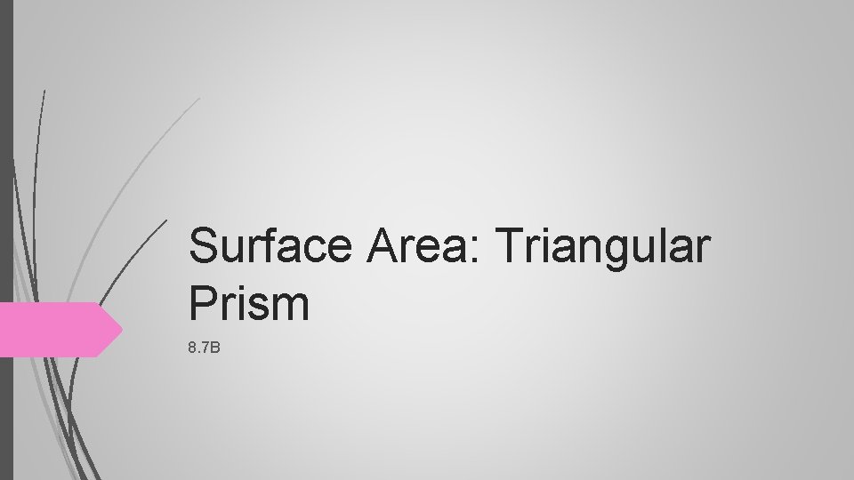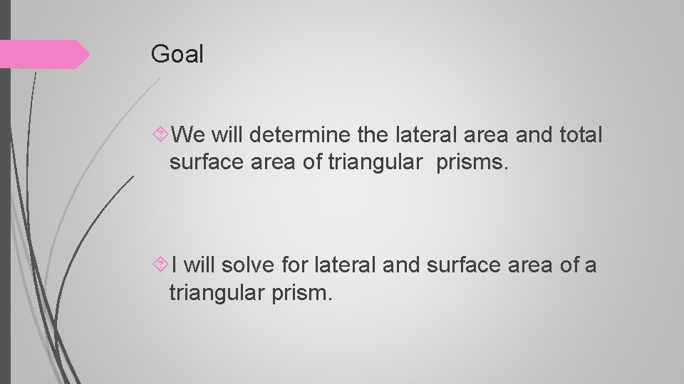 Goal We will determine the lateral area and total surface area of triangular prisms. I will solve for lateral and surface area of a triangular prism.
