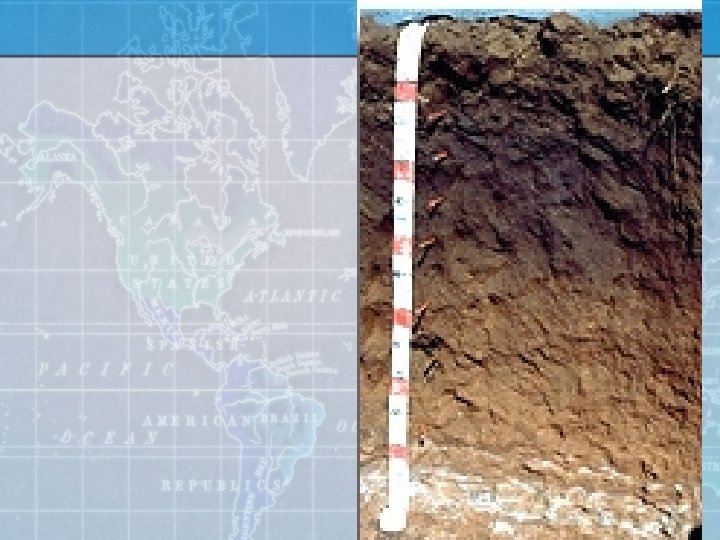 Soils • Soil horizons – layers of soil possessing different characteristics • Soil profile – a cross section of the soil at a particular location • Soils tend to be rich in organic material at the top, and composed mainly of weathered rock near the bedrock