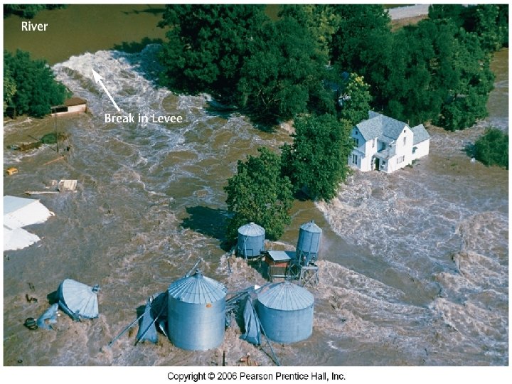 Vocabulary Review Ø Flood: The phenomenon whereby a river overflows its banks. Ø Flood plain: A wide, level area that borders a river and is covered by its water during a flood. Ø Meander: Broad: looping bends in a river. Ø Oxbow lake: A crescent-shaped body of water formed when sediments deposited by a river cut off a meander from the river. Ø Natural levees: Elevated ridges along a river’s bank that are formed by the deposition of the river’s sediment load. Ø Flash flood: A sudden flood, usually caused by intense, heavy rainfall.
