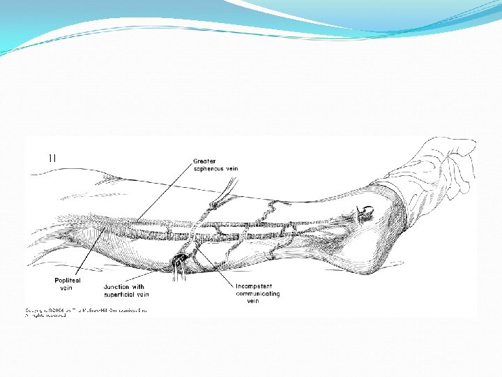 Introduction The venous drainage system of the lower extremity consists of three sets of veins: Deep veins, Superficial veins Perforating veins. All veins contain delicate one-way valves that normally open to allow blood to flow toward the heart and prevent blood from flowing in a retrograde fashion after the valves close.