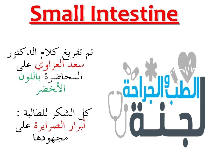 SURGICAL ANATOMY *The duodenum has 4 parts: superior, descending, horizontal, and ascending * Except for its first part, the duodenum is largely retroperitoneal it has no mesentery and is covered by peritoneum only on its anterior surface. * The B. supply of small intestine by sup. Mesenteric artery From the second part of the duodenum to the distal third end of the transverse colon.