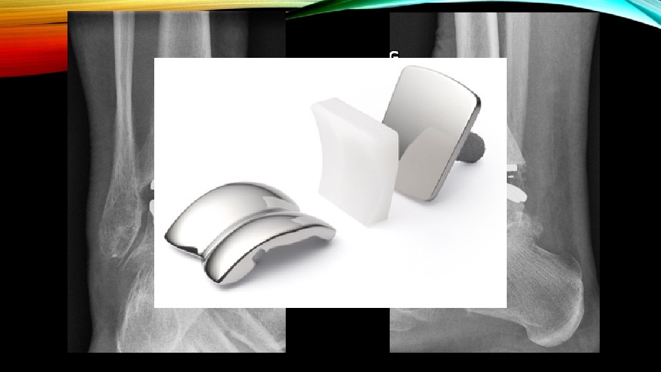 ANKLE REPLACEMENT 2016 Total Inflammatory % (RA) Arthropathy (RA) TAR 728 60 (50) 8. 2 (6. 9) THR 93, 234 1231 1. 3 TKR 102, 519 1808 (1112) 1. 8 (1. 1) Source - http: //www. njrreports. org. uk/