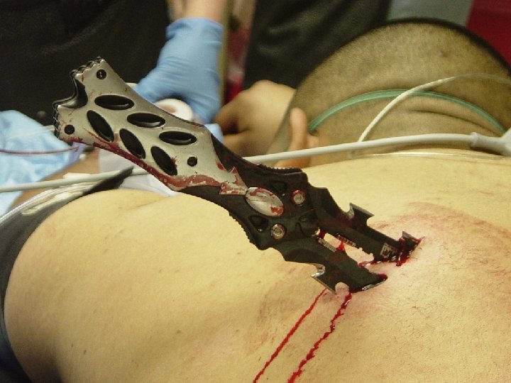 Case Presentation • Now that the chest tube is draining the hemopneumothorax, the patient’s pressure drops to 60/palp • Help? • The patient has bilateral track marks from history of IVDA.