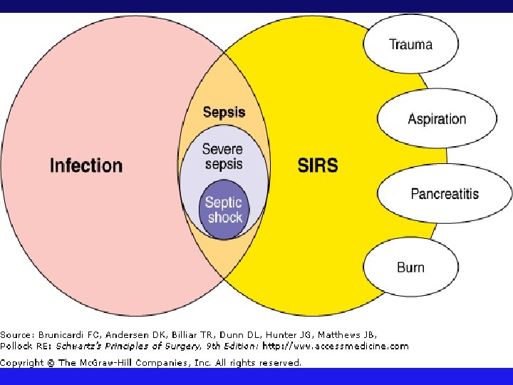 Sepsis Definition: SIRS plus evidence of local or systemic infection. Septic Shock Definition: Sepsis plus end organ hypoprofusion. Mortality of up to 40%