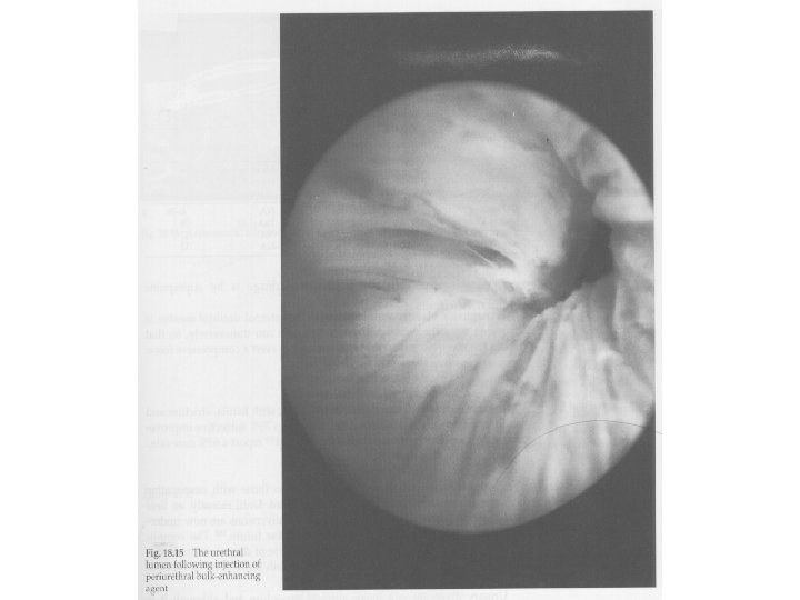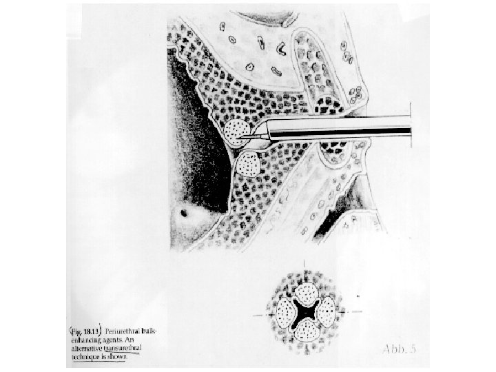 Peri-urethral Injection Advantages • Safe Disadvantages • Low success rate 25 – 60% • Expensive • Need to be repeated every 1 -2 year