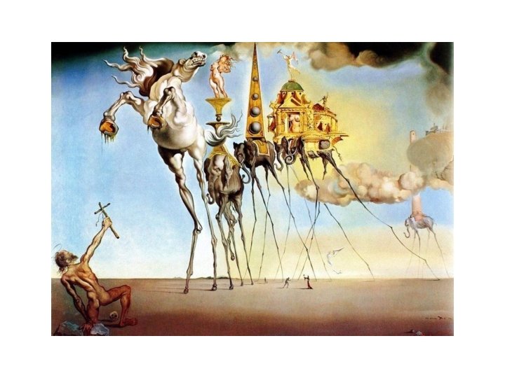 Surrealism • Dream like images • A style in which visual imagery from the subconscious mind is used with no intention of making the work logically comprehensible. • Realistic images with irrational elements