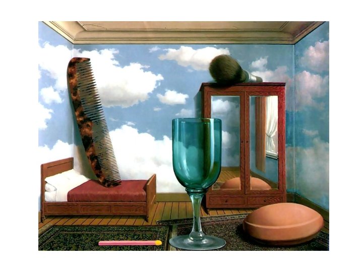 Magritte (1898 -1967) • Studied at the Royal Academy of Arts in Brussels • He was a wallpaper designer and commercial artist • His first exhibition was a failure, which provoked depression. • Magritte moved to Paris after his failed exhibition and became involved in the surrealist group.