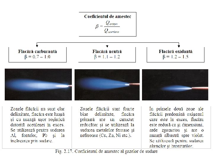 Efectul termic produs prin arderea acetilenei se calculează în funcţie de debitul acetilenei Qa exprimat în (litri/h) şi randamentul flăcării. Randamentul flăcării scade cu creşterea debitului de acetilenă datorită arderii incomplete şi a pierderilor termice în straturile exterioare turbulente ale flăcării. (J/sec) Structura şi forma flăcării depinde de raportul volumetric al componentelor amestecului gazos, astfel că se defineşte coeficientul de amestec β ca fiind raportul dintre debitul de oxigen şi cel de acetilenă din amestecul gazos