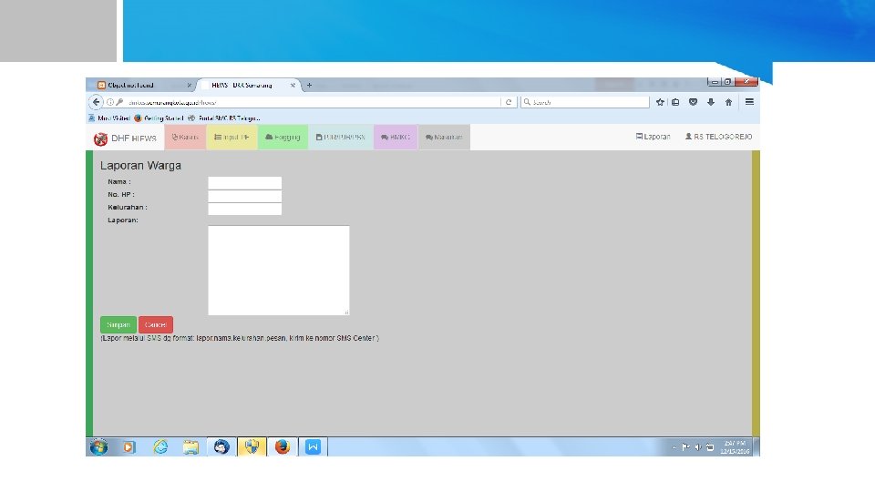 Pelaksanaan Surveilans Epidemiologi di Subdin (P 2 P) • Surveilans epidemilogi di Subdin P 2 P DKK Semarang dilakukan dengan membuat rekapitulasi data W 2 dari Data-data yang digunakan untuk melaksanakan kewaspadaan dini Kejadian Luar Biasa (KLB) di DKK Semarang diperoleh dari laporan W 2 Puskesmas pada hari Rabu dan W 2 Rumah Sakit pada hari Kamis. Laporan ini akan direkap oleh bagian Seksi Pengamatan Penyakit untuk diolah dengan menggunakan program excel, sehingga dapat digambarkan distribusi penyakit pada waktu(minggu tersebut). • Dari hasil pengolahan data ini diperoleh informasi wilayah-wilayah tertentu yang potensial terjadi KLB penyakit tertentu. Informasi ini akan digunakan oleh Kepala Seksi Pengamatan untuk menentukan kegiatan Pemantauan Wilayah Setempat (PWS) sekaligus melaporkan secara rutin kepada Kepala Subdin Pencegahan dan Pemberantasan Penyakit (P 2 P) di DKK Semarang. Berdasarkan informasi dan laporan SKD ini Subdin P 2 P menentukan program pemberantasan penyakit.