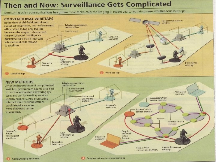 History • 1600 s – MA officials inspect households for proper moral conduct – Puritan law to keep eye on neighbor • 1700 s – Mail routinely opened in post office • 1800 s – Bugging of telegraph begins