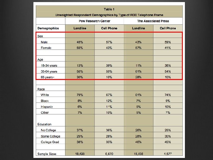 Ansolabehere & Schaffner (2011) Comparison of Survey Modalities 3 -mode study conducted in 2010 1. Opt-in Internet panel 2. Live telephone interviews (using national RDD sample of landlines and cell phones) 3. Mail (using national sample of residential addresses)