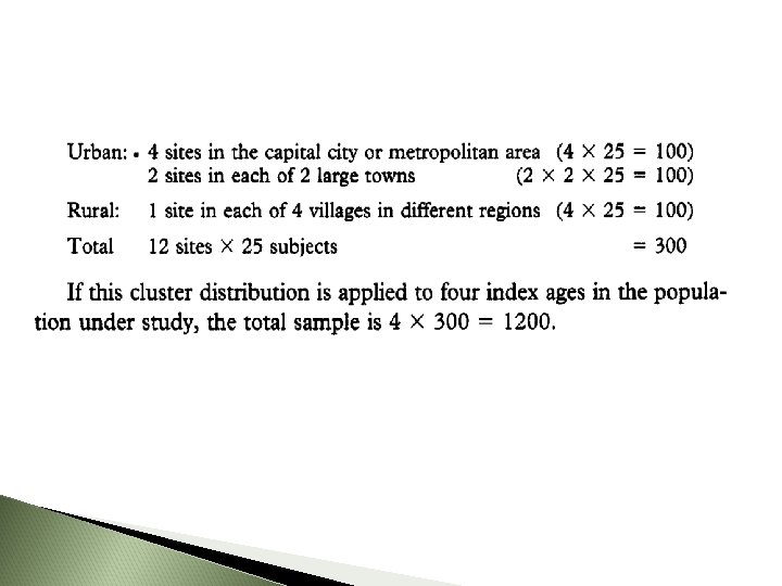 Subgroups Ø Sampling sites are usually chosen so as to provide information on population groups likely to have different levels of oral disease.