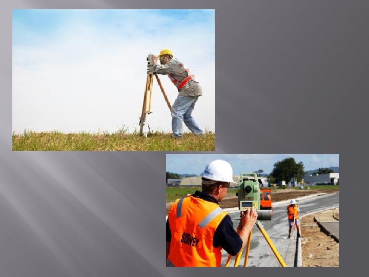WHAT IS A SURVEYOR Surveyors work with elements of geometry, trigonometry, regression analysis, physics, engineering, metrology, program ming languages and the law. They use equipment like total stations, robotic total stations, GPS receivers, retro reflectors, 3 D scanners, radios, handheld tablets, digital levels, subsurface locators, drones, GIS and surveying software.