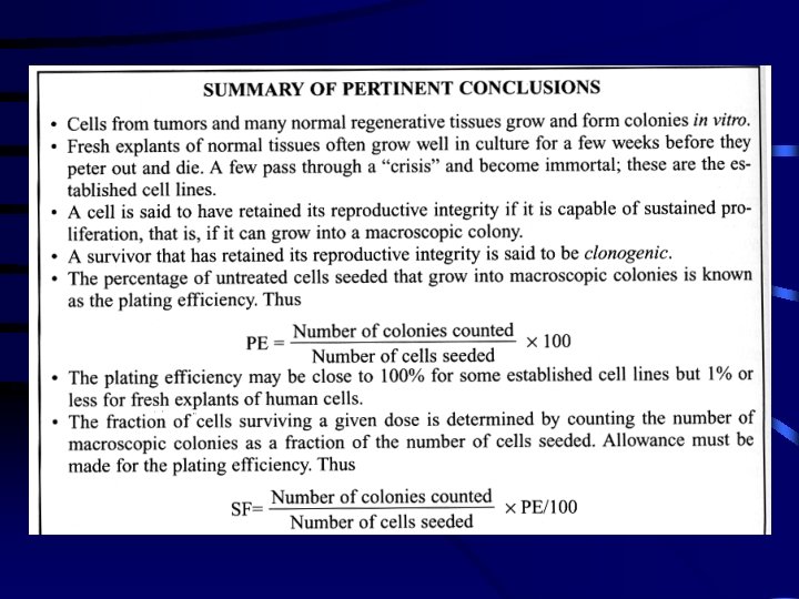 Definition of survival for radiobiology Retain reproductive integrity Proliferate indefinitely to produce colony (a large clone = colony = clonogenic)