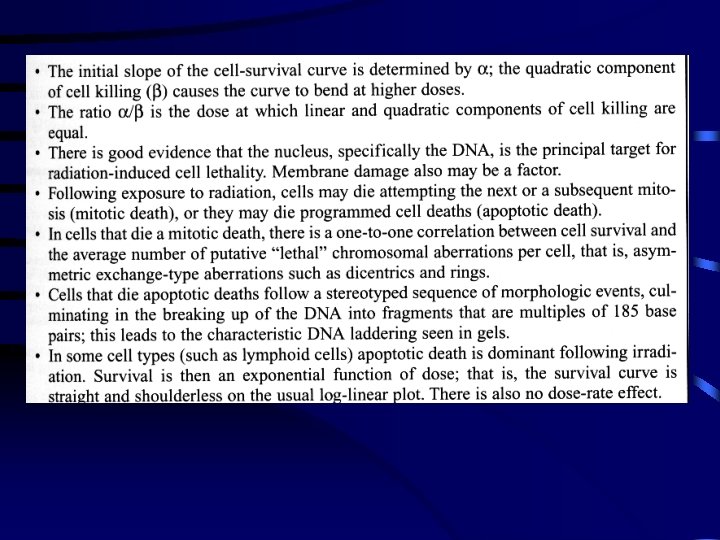 Survival-curve shape and mechanism of cell death Most cells fall between apopototic & mitotic death Note! Shoulder