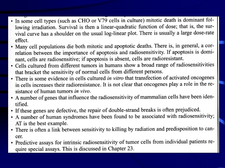 Apoptotic and mitotic death: MD • The most common form of cell death from radiation is mitotic death (MD). Cell die in attempting to divide because of damaged chromosomes. Review Cell death by mitotic catastrophe: a molecular definition http: //www. nature. com/cgi-taf/Dyna. Page. taf? file=/onc/journal/v 23/n 16/abs/1207528 a. html&dynoptions=doi 1097246946