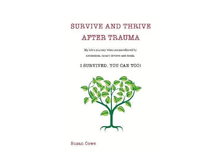 Susan Cowe Miller • Lifestyle Prescriptions® Health Coach • Root Cause Analysis to physical symptoms • Stress and Anxiety Management working primarily with EFT and Matrix Re. Imprinting • Counselling • Author: Survive and Thrive after Trauma • Was 30 yrs Primary teacher • Now also run a Bn. B
