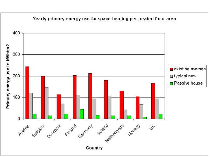 Traditional passive houses Traditional building in Southern China. In this climate, cooling rather than heating, is required. Traditional turf houses in Iceland. Ingolstadt-Halmstadt: Low-energy houses (30 k. Wh/(m²a) heating demand) in two countries, by Architekt Hans Eek (1985)