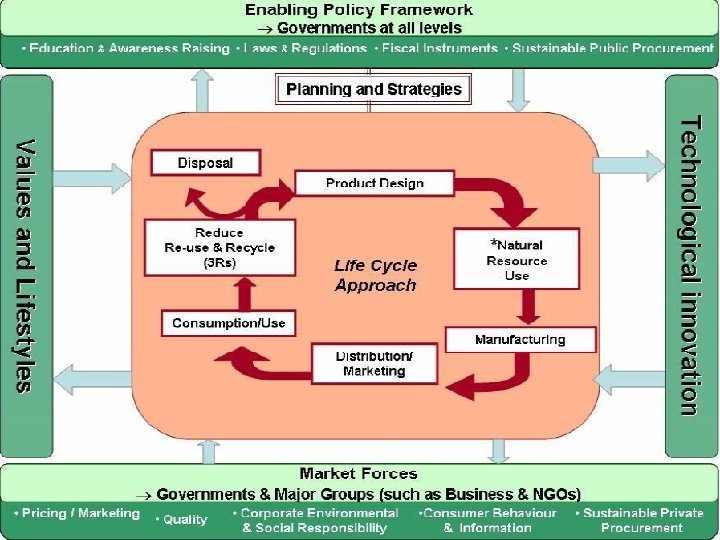 SCP as a lens • The value of talking about production and consumption is the ability to focus on , and address, the root causes of unsustainability. • SCP takes a holistic, life cycle approach to the systems of production and consumption, starting from needs and values up to wastes. • Practical implementation strategy to achieve Sustainable Development that requires wide stakeholder involvement