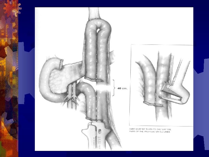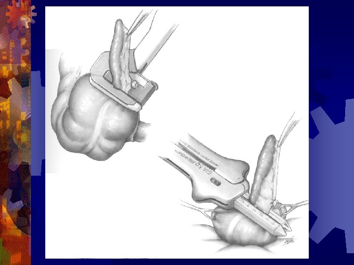 PRECAUCIONES 1. - BOLSA DE TABACO NO MÁS DE 2, 5 cm 2. -LIBERAR INTESTINO LEJOS DE LINEA DE CORTE CCEEA 34 – 1, 5 cm / 31 - 1, 5 cm / 28 – 1 cm / 25 – 0, 5 cm y 21 – 0, 25 cm 3. - TEJIDO LIBRE DE SUTURAS O CLIPS 4. - ESPACIO ENTRE CARTUCHO Y YUNQUE BIEN CERRADO VER MARCA VERDE 5. - HEMOSTASIA 6. - INSPECCIONAR QUE TODAS LA CAPAS DE TEJIDO ESTEN INCORPORADAS 7. - NO EXPONER A TEMP. SUPERIORES A 130°F (54°C)