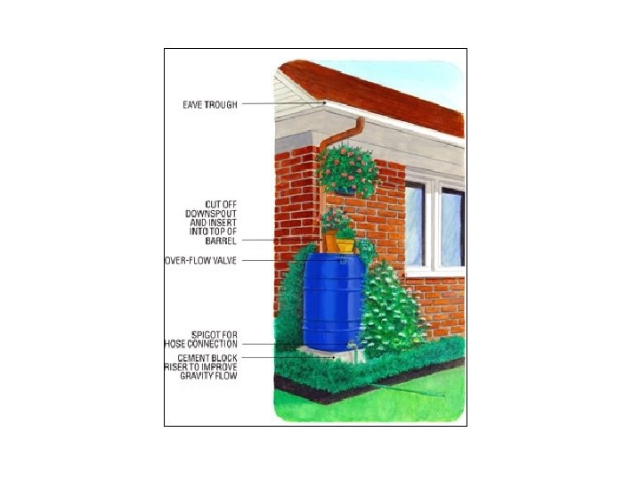 Rain Barrels Rain barrels allow stormwater runoff to be collected and reused. Not only do they prevent water from entering the stormwater system, but they save homeowners money on their water bills by providing free fresh water for irrigation and other needs • Yağmur suyu toplama bidonu .