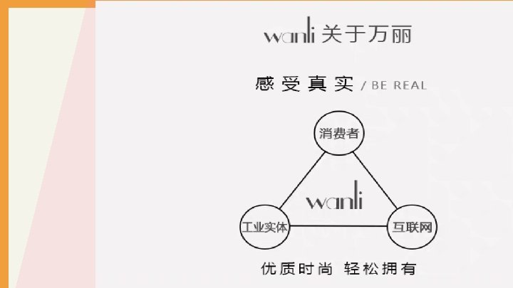 03. 产品介绍 Product Introduction “万丽”以年龄在 18 -35岁的时尚男女为核心目标人群。 他们富有时代感,喜欢新生事物。“万丽”通过时尚男 装、优雅女装及丰富的配饰品为基本产品主线,满足各 类需求的消费人群,以“一流的设计,二流的面料,三 流的价格”为营运理念,每年推出几千个时尚款式。 "Wan. Li" focuses on fashionable men and women aged 18 to 35. They have a sense of The Times and like new things. "Wanli" through the fashion men's wear, elegant women's wear and rich accessories as the basic product line, to meet all kinds of needs of