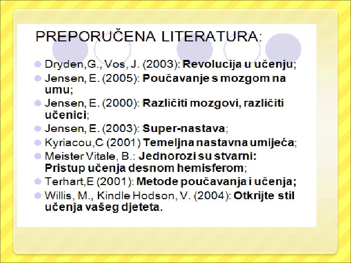 IZREKE Ako želite djeci pomoći Vještina poučavanja sve morate misliti na se više pretvara u njihov mozak. Ona ne umijeće poučavanja čitaju pomoću bubrega. djece da sama sebe (Deborah Weber) poučavaju (Helena H. Wellenberger i Michael S. Um nije posuda koju Bogolea) treba napuniti, već Oni koji mogu vatra koju treba poučavati poučavaju. zapaliti. Oni koji ne mogu (Plutarh –grčki esejist prije 3000 poučavati, predaju. godina ovo zapisao) (David Perry) 80% poteškoća u Onaj koji osjeća poriv učenju povezano je sa da leti nikada ne stresom. Uklonite može pristati na stres, uklonit ćete puzanje (H. Keller) poteškoće. (Gordon Stokes)