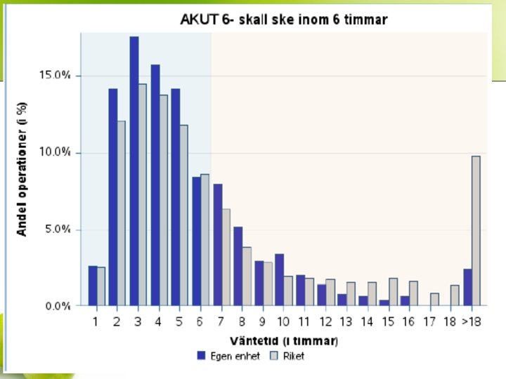 Andel genomförda delar av WHO checklista för säkrare operationer under perioden 2010 -01 -01 till 2014 -08 -16 WHO genomförande Antal operationer Egen enhet 6340 75. 4% 94. 7% 90. 6% 74. 1% Riket 50122 60. 2% 68. 4% 64. 7% 55. 5% Förberedelse Time-out Sign-out Komplett Fotnot: När samtliga tre delmoment anses WHO checklista Komplett som genomförd (=Ja).
