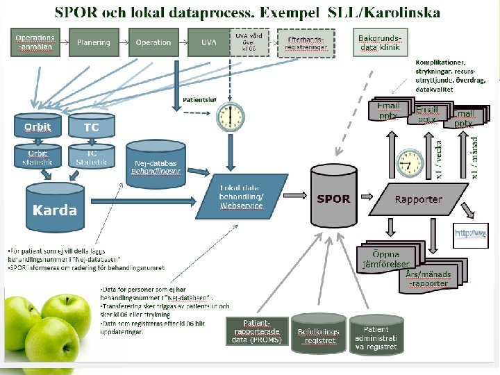 SPOR jan 2015 I produktionsmiljön l I testmiljön 35 operationsenheter uppdelat på 20 sjukhus och 7 vårdgivare • • Gävleborg Kalmar Kronoberg Halland Östergötland Dalarna Stockholm ( Södertälje) Sörmland Ytterligare 2 vårdgivare • Region Halland • Stockholm, KS • Sahlgrenska • Västra Götaland Övriga som är på gång • Värmland • Uppsala (som valt Orbit) • Västmanland