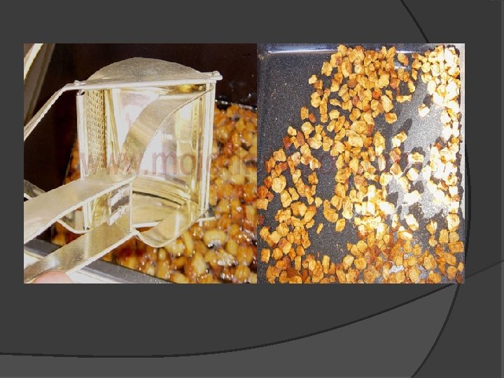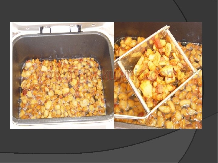 Boja im mora biti zlatno-žuta. Kad se postigne odgovarajuća boja, čvarci se pokupe ručnom prešom i stisnu da se ocjedi masnoća.