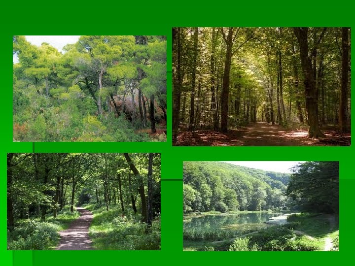 Važnost šuma § Šume proizvode kisik, a zadržavaju ugljični dioksid. § Sadržavaju znatne količine prašine § Stanište su mnogih životinja § Povoljno utječu na kruženje vode u prirodi