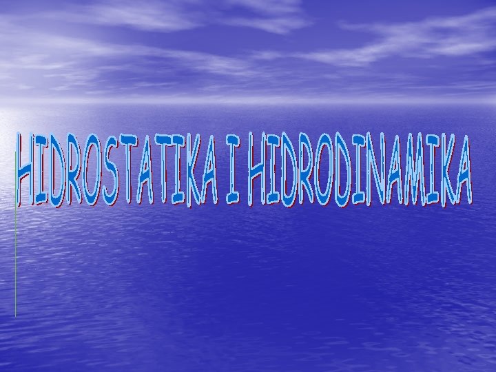 Svojstva tekućina • međumolekularne sile su jače nego u plinu: • • nestlačivost - stalan volumen u prostoru bez vanjskih sila – oblik kugle u polju vanjske sile – oblik posude slobodna površina je uvijek okomita na vanjsku silu tlakovi u tekućini uzrokovani su vanjskom silom