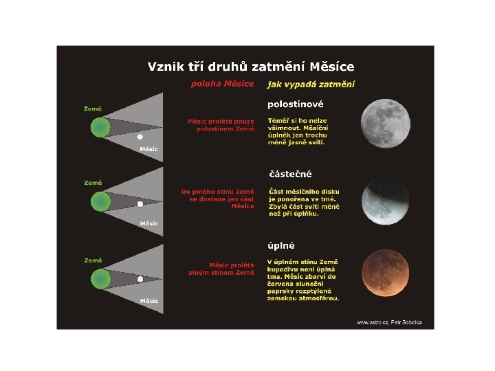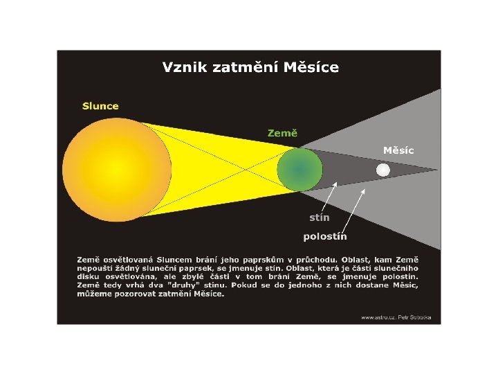 SVĚTLO A TMA – ZATMĚNÍ MĚSÍCE Země se neustále otáčí kolem Slunce. To je příčinou, proč jsou některé části Země osvětleny a jiné ve tmě a proč se mění denní a roční doby.