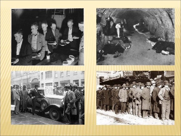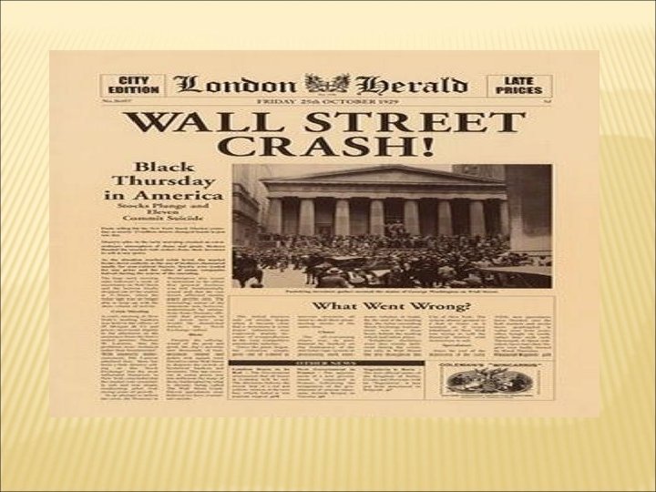 SVĚTOVÁ HOSPODÁŘSKÁ KRIZE GREAT DEPRESSION 1929 – 1933 24. 10. 1929 = černý pátek (čtvrtek)