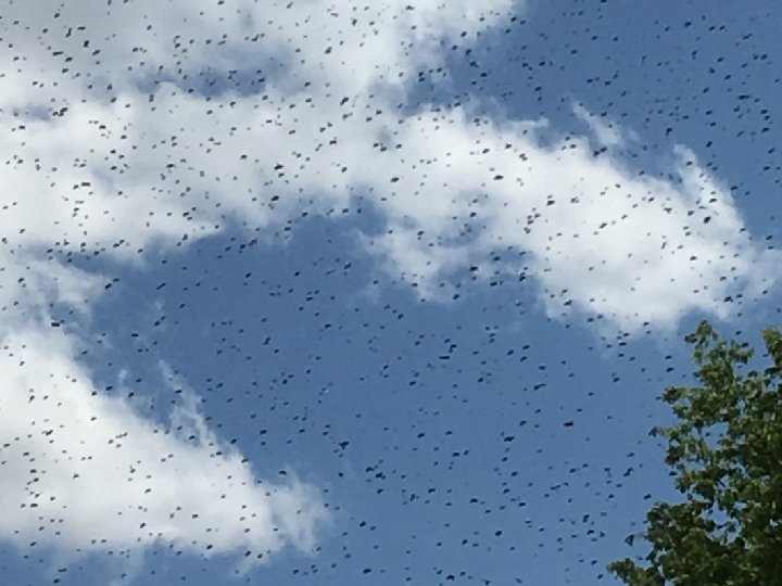 Swarming n Queen cells are built n Usually sometime right around or shortly after they are capped the hive swarms. Depending on the weather this can be as long as when the queen cells are about to emerge. n The old queen and the unemployed nurse bees leave and cluster on a nearby branch n Scout bees find a new location and they swarm flies off to their new home n If the hive is still overcrowded one of the virgin queens will leave with more of the bees in an afterswarm