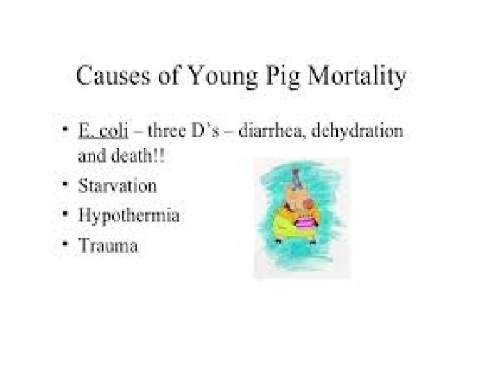 Piglet Anemia • Anemia is an iron • The piglet will eat deficiency of the some of the soil blood. • Soil contains trace • The most natural amounts of iron way to treat for this is to place the piglet on a soil floor
