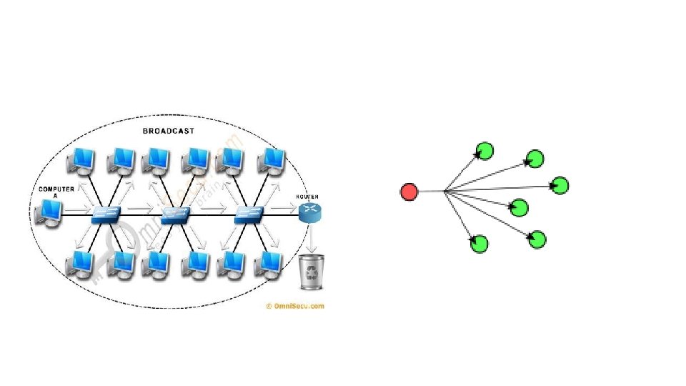 What is Broadcast? • Broadcast is a type of communication where data is sent from one computer once and a copy of that data will be forwarded to all the devices. • In Broadcast, there is only one sender and the data is sent only once. But the Broadcast data is delivered to all connected devices. • Switches by design will forward the broadcast traffic and Routers by design will drop the broadcast traffic. In other words, Routers will not allow a broadcast from one LAN to cross the Router and reach another Network Segment. The primary function of a Router is to divide a big Broadcast domain to Multiple smaller Broadcast domain. • Example: ARP Request message, DHCP DISCOVER Message